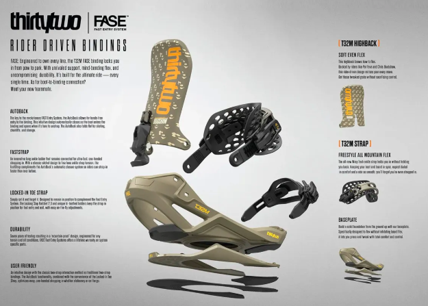 FASE®: Engineered to own every line, the T32M FASE® binding locks you in from pow to park. With unrivaled support, mind-bending flex and uncompromising durability, it’s built for the ultimate ride… every single time. As for boot-to-binding connection? Meet your new teammate.