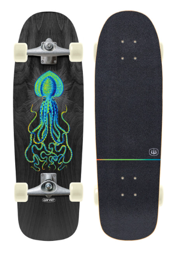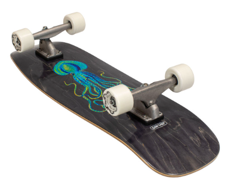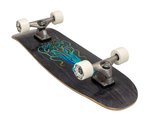 Reissued 80’s decks can make for a fun surfskate conversion, but at 14 – 14.5” the wheelbase is always too short, so we made a modern-retro surfskate with a longer 15.75” wheelbase and a proper double-kick mold. Designed for greater versatility in bowls and parks as well as street surfing tricks, it’s a stealthy union of vintage vibe and progressive performance.
