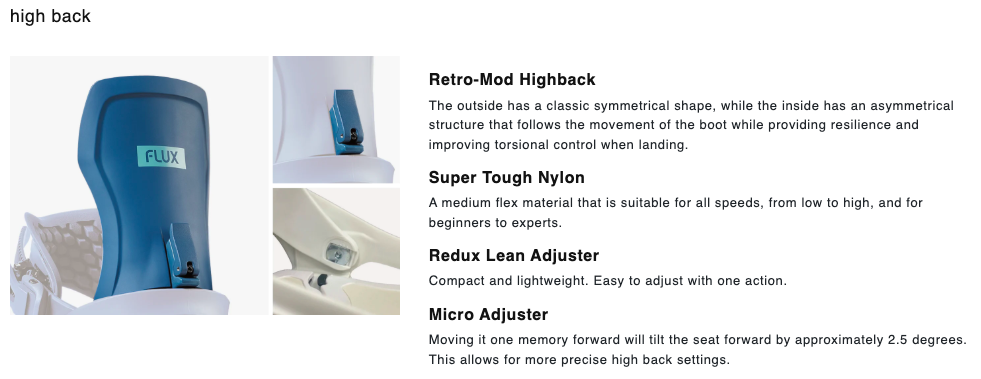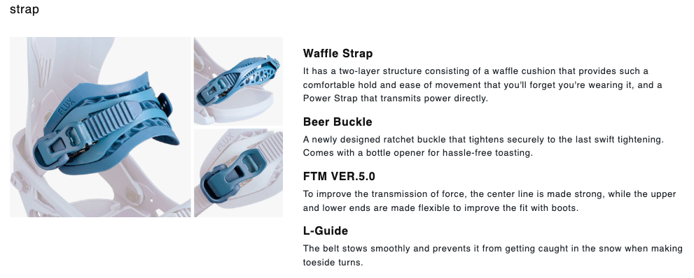 While keeping the same base design that prioritizes efficient power transmission to the board, a large stabilizer has been added to the heel side. By using a highly resilient material, the board can transmit pow