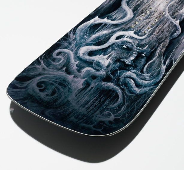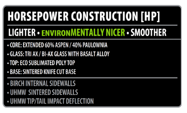 Our experiMENTAL Division’s big guy “dream board” NOW IN CAMBER! Constant testing and refinement by Trevor Phillips, Krush Kulesza, Neil Green and Kurt Jensen make this the best larger gentlemen’s power freestyle stick on the planet. A slightly more relaxed longer nose shape for pow float. This ape is absolutely resort ready… hit the rails or put it on rail and trench, your toes won’t drag but your knuckles might. Built in ultra-light HP construction for easy on the front foot chair rides.