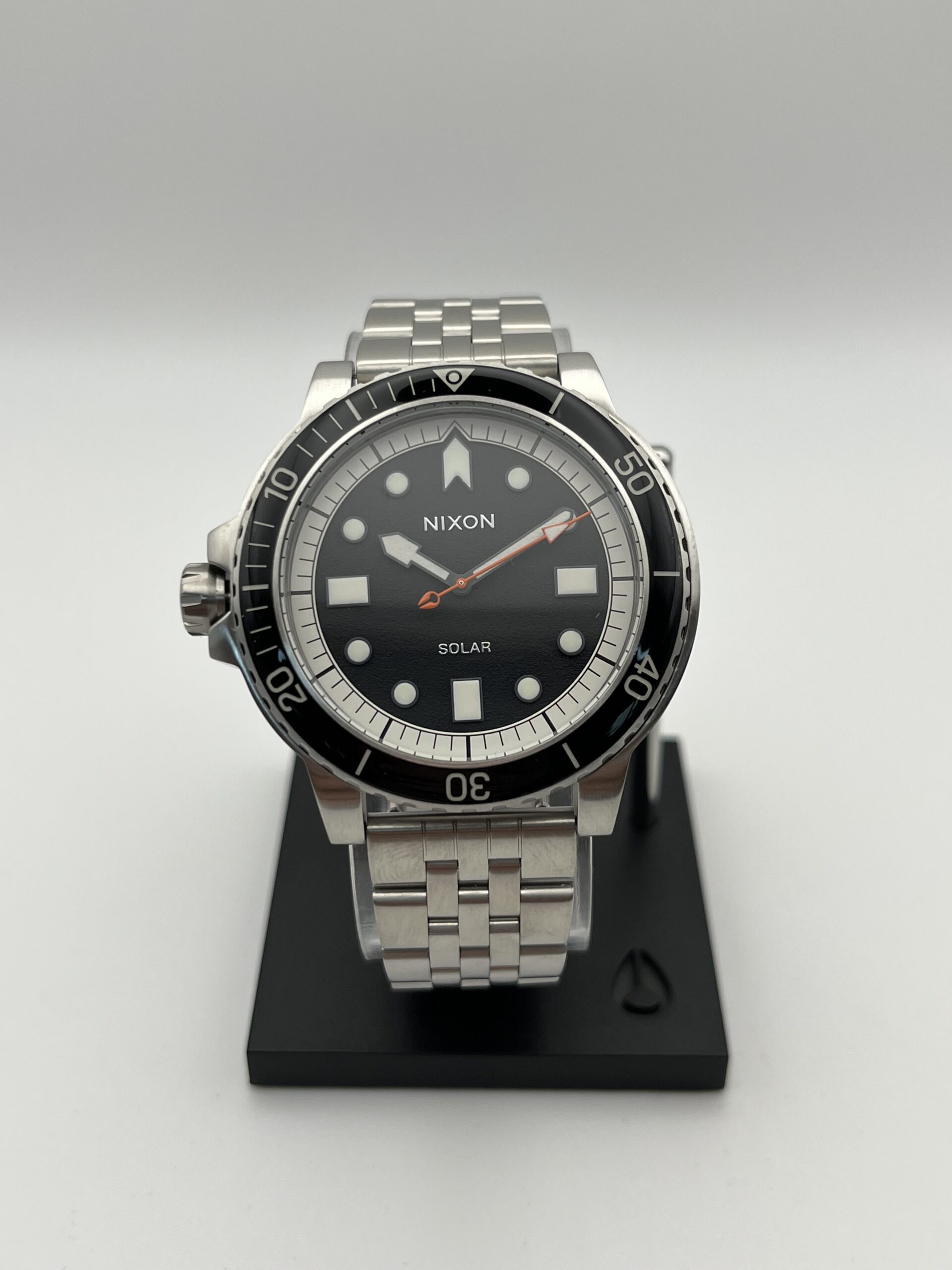 A dive inspired watch you can wear to the dive bar. The Stinger 44 resonates to a time where analog ruled the depths of the unknown by allowing divers to know how long they have been underwater with the rotating bezel. Rule the night in style with luminous indices for low light visibility. A 44mm stainless steel case weighted just right for everyday use, a 5-link bracelet that will catch any eye day or night, and did we mention it’s powered by the sun?