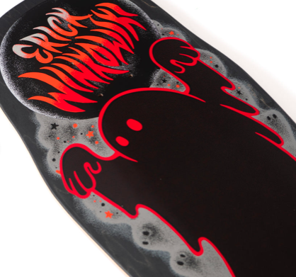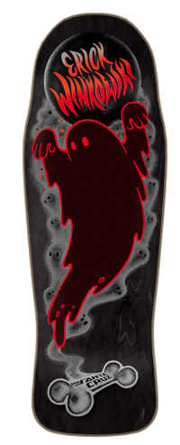 Santa Cruz Skateboards Erick Winkowski Ghost Pro Shaped deck featuring spot matte graphics on black stained veneer and Erick’s OG shape.