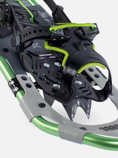 Easily access the backcountry with the Mountaineer, our classic tubular frame snowshoe for go anywhere, do anything versatility. Aggressive traction is provided on two fronts by the eight teeth of the Anaconda™ toe crampon backed up by enhanced downhill braking from the Python™ heel crampon. The ActiveFit™ 2.0 binding brings comfort, security and ease-of-use with a TPU cinch strap that reduces friction and ice build-up, and the single-handed convenience of the EZ heel buckle. The Mountaineer’s design is rounded out with the ActiveLift™ 19° heel lift to reduce calf fatigue and tendon strain on the steeper ascents encountered in backcountry terrain.